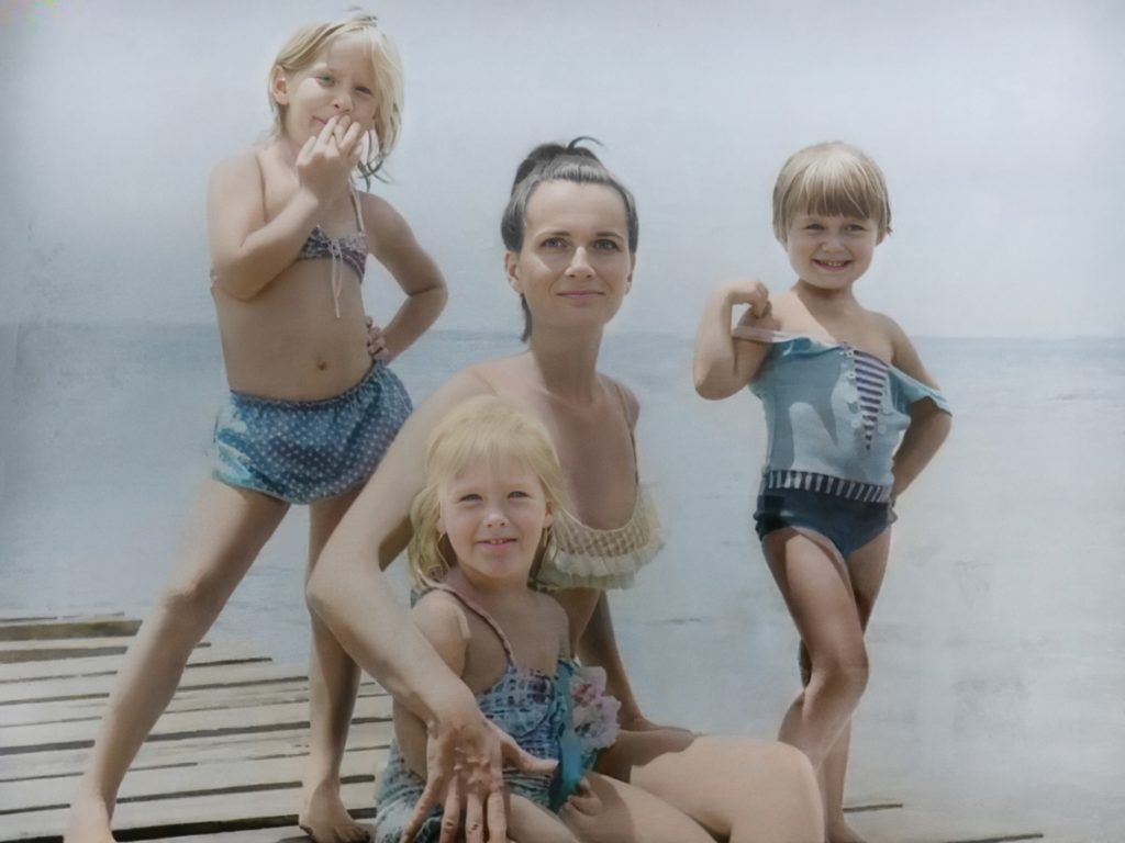 My mother, my sisters (Valerie and Heather), and I. I am the littlest one seated by my mom.